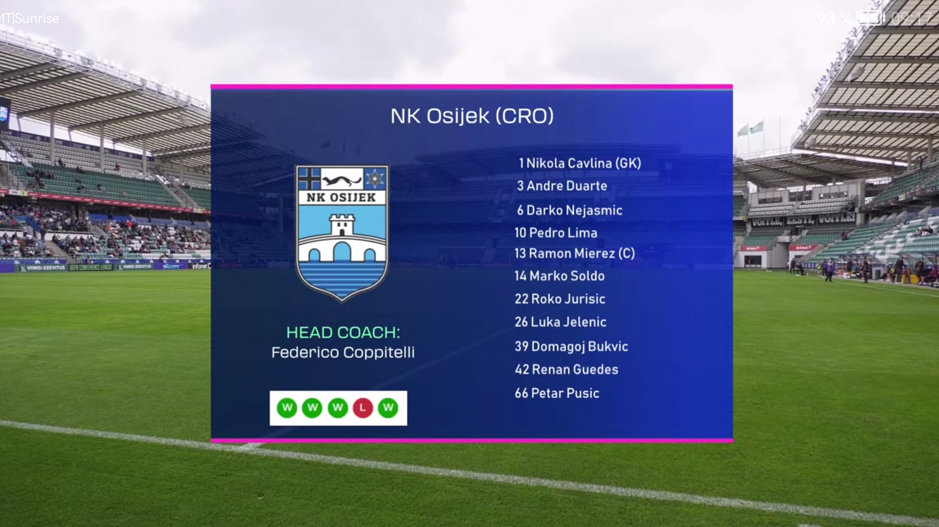 Предупреждения: Мавретич, Торрес-главный тренер и Жоао Педро (все-Левадия) — Ренан Гуедес (Осиек)