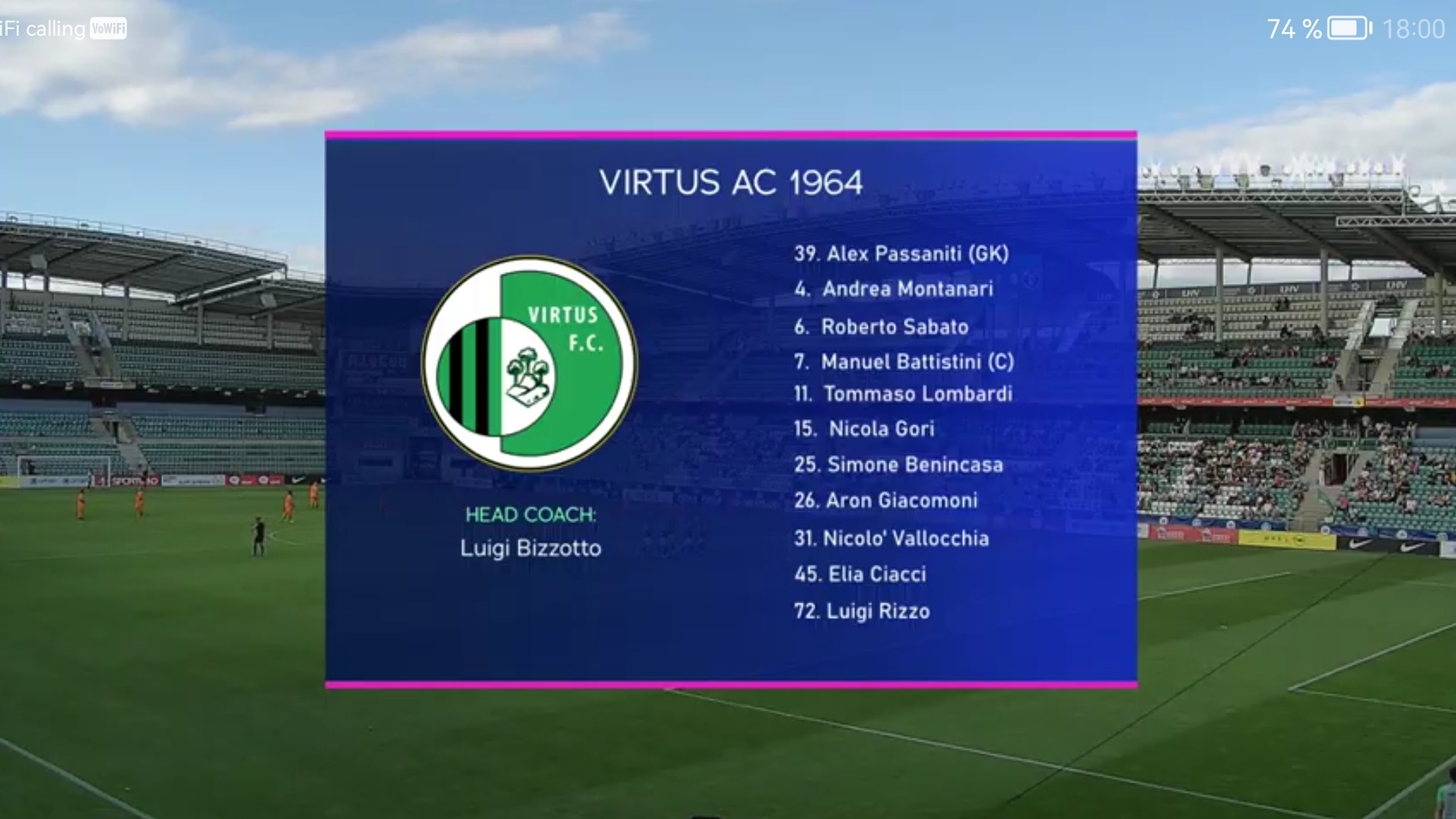 Предупреждения: Лукка (Флора) — Пассанити, Бенинкаса, Риналди, Сабато, Батистини, Гори (все-Виртус)