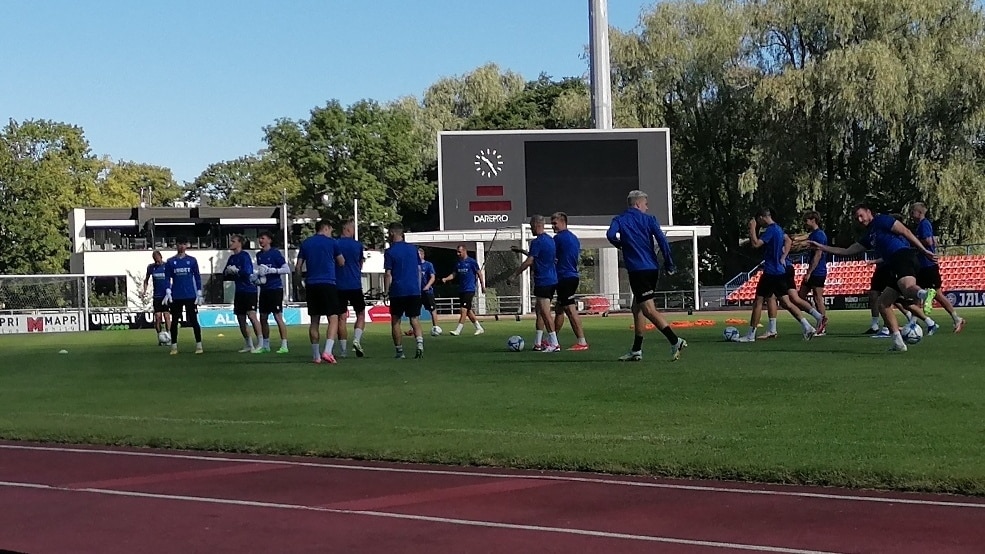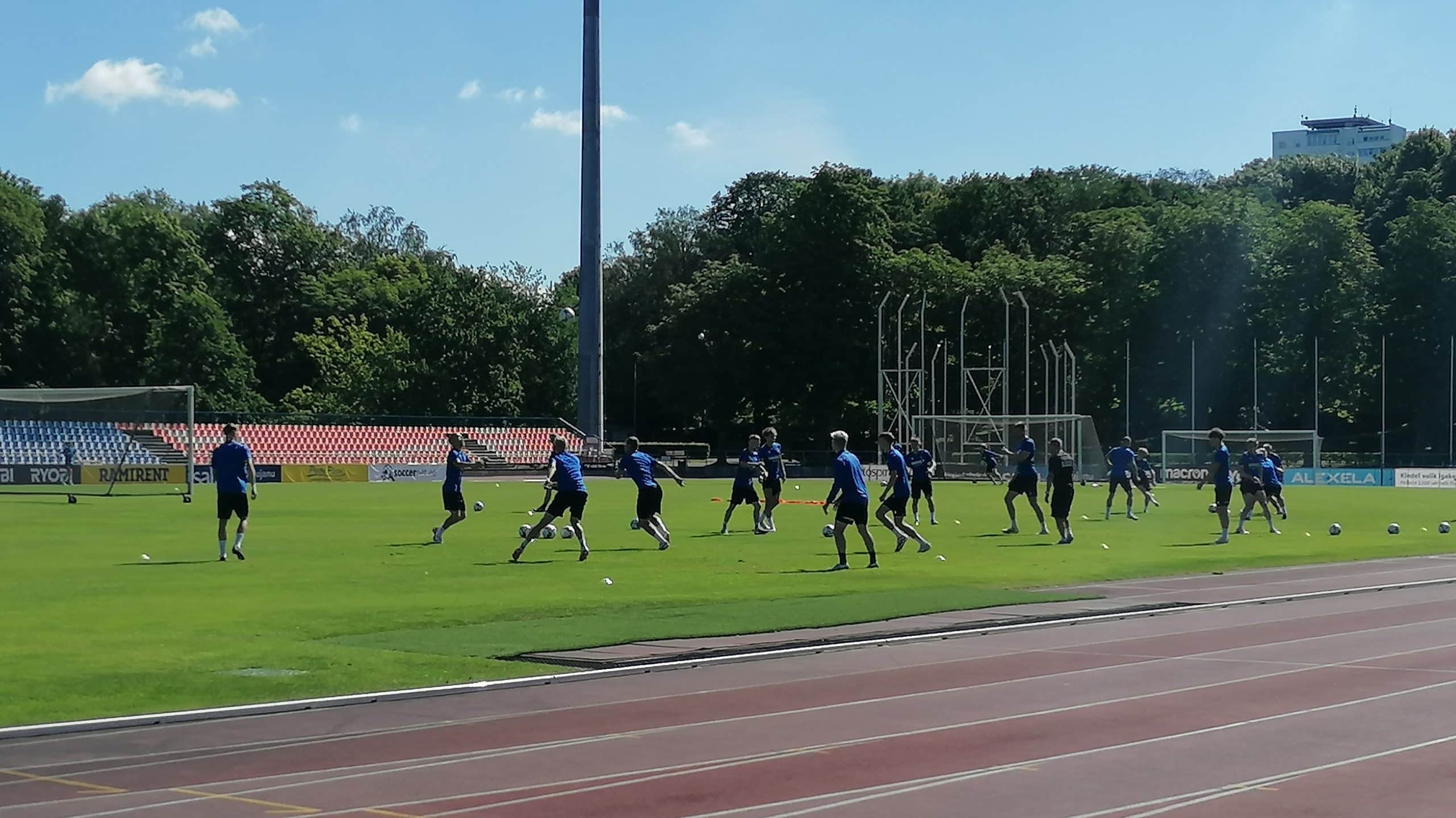 Несмотря на то, что «Калев» не считается фаворитов пары, тренировка прошла в хорошем настроении футболистов, в великолепное солнечное утро. Немного чувствовалось лишь напряжение у тренерского штаба. Да, будет сложный матч, да есть некоторое напряжение в дебютном матче для «Калева» в Европе, но это новый адреналин, новые эмоции, новый этап в истории для футбольного клуба «Калев». Но это и новый опыт как для многих футболистов клуба, так и для всех кто как-то связан с «Калевом».
