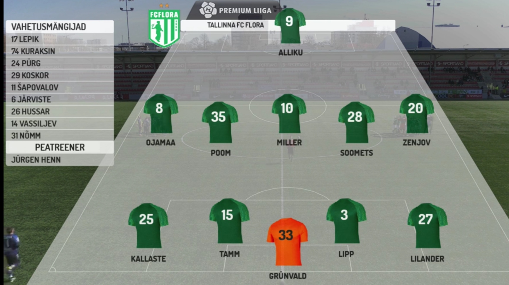 ФЛОРА — Нарва Транс 1:0 (1:0) Зрители: 239.