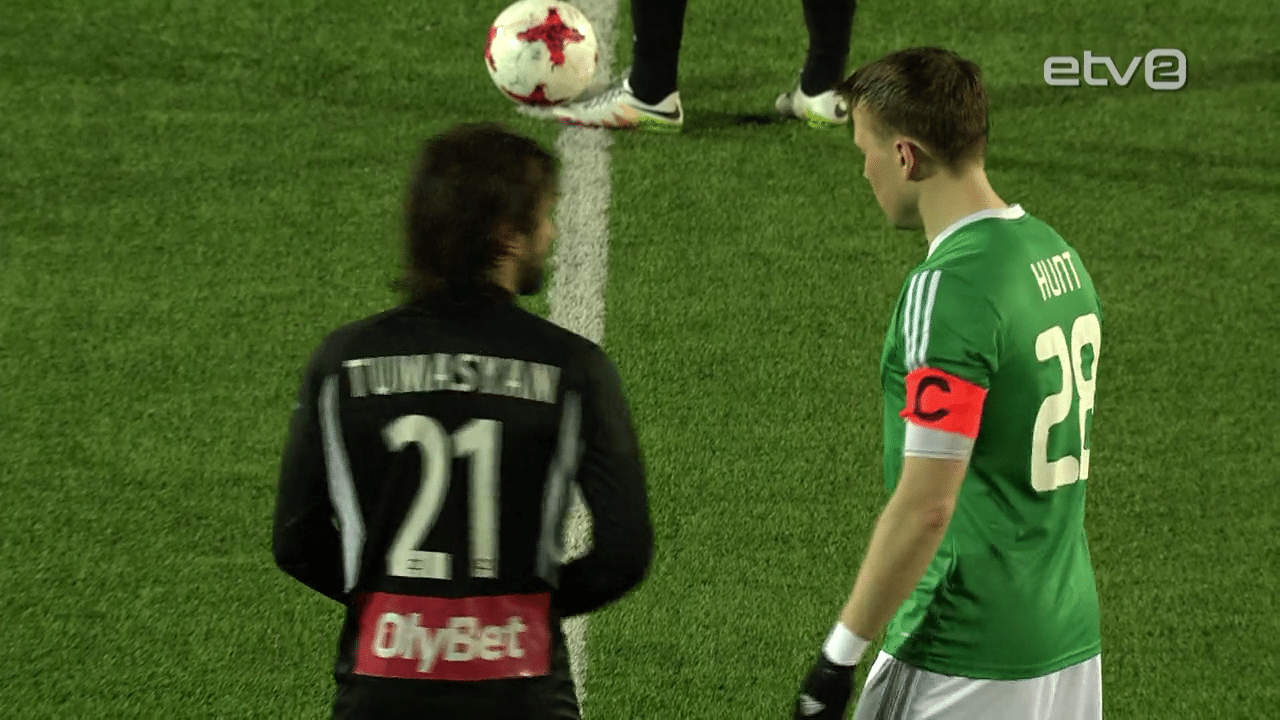 Если говорить о ходе матча, то в первом тайме обе команды события не форсировали, пытаясь, скорее поймать ошибку соперника, чем сами создать что-то. Рисковать никто не хотел. Было много борьбы, чему способствовало и то, что арбитр Юрий Фришер задал достаточно высокую планку жесткости и желтые карточки раздавать не спешил. Игра шла точно в соответствии с девизом Премиум Лиги — игра мужественных мужчин. Болельщики обоих клубов активно поддерживали своих любимцев, но обстановка на трибунах была дружелюбной. Первым из вратарей по-серьезному вступил в игру Лепметс, отбив плотный удар из-за пределов штрафной, и не позволив никому из инфонетовцев сыграть на добивании. Чуть позже все свое мастерство показал уже Игонен, в красивом прыжке отбив удар Раудсеппа. Но в общем, и в целом, при всей заряженности на борьбу, футболистам нехватало точности.