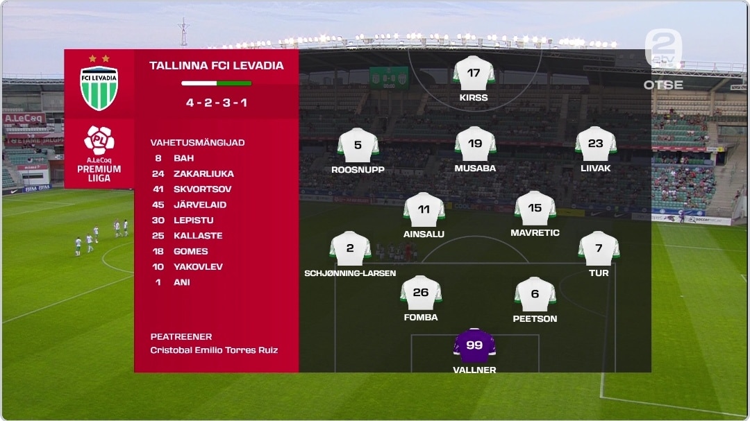 ФЛОРА — Левадия 2:1 (1:0) Главный арбитр: К. Тохвер Зрители: 2360