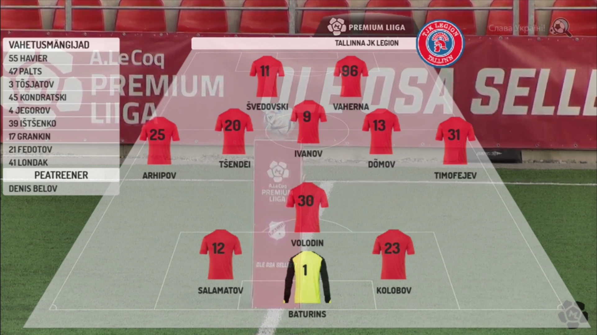 Предупреждения: Сантос Велвес, Элхи (оба-Нымме Калью) — Архипов, Тимофеев (оба-Легион)