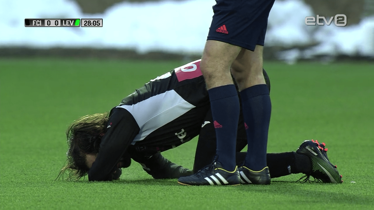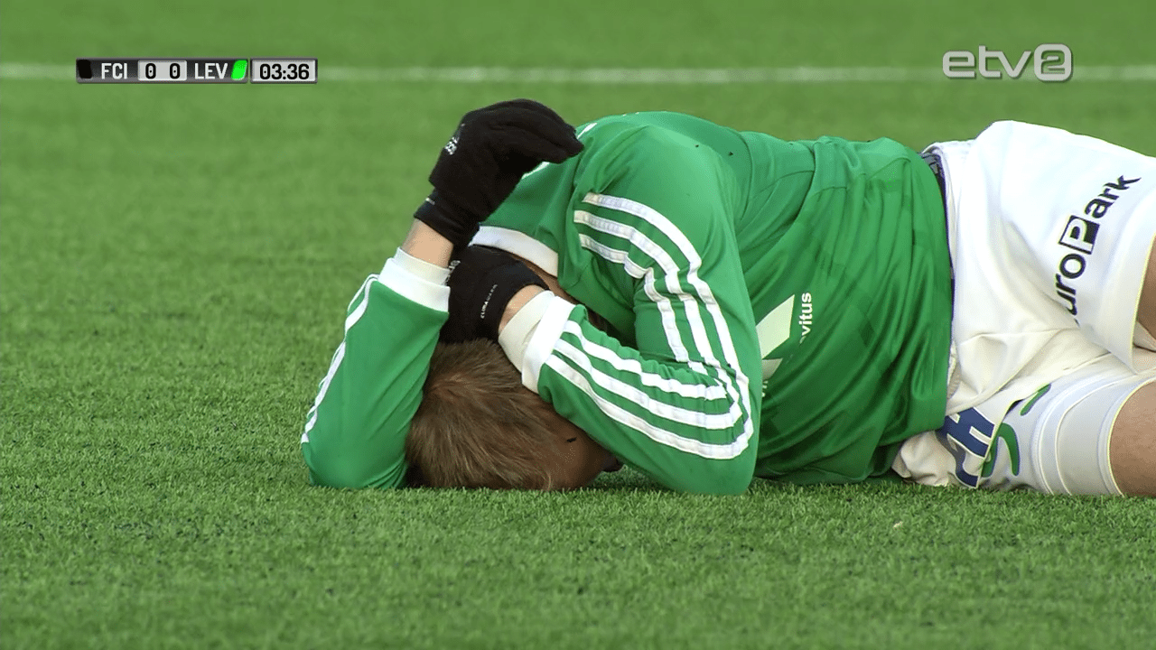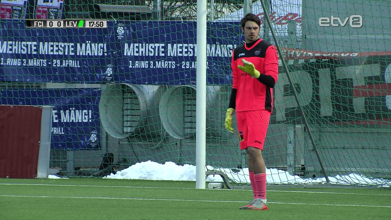 Самый реальный момент на 43 минуте упустил А. Раудсепп (ФК Левадия). Вратарь хозяев выручает «сейфом» свой клуб.