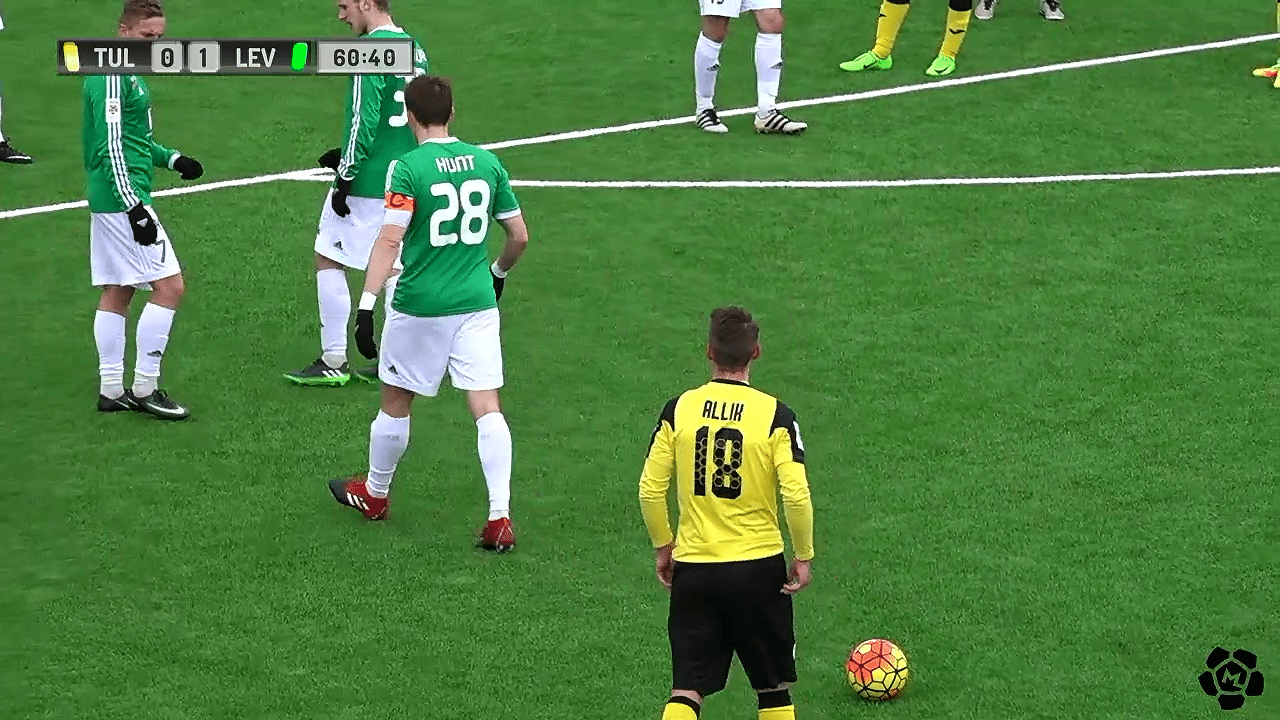 После стандартного положения хорошая скидочка головой Павла Федоренко в штрафную и в сутолоке игрок «Флоры» — Вихманн нашёл брежь и открыл таки счёт. Хорошо разыгранный стандарт и гол в раздевалку.