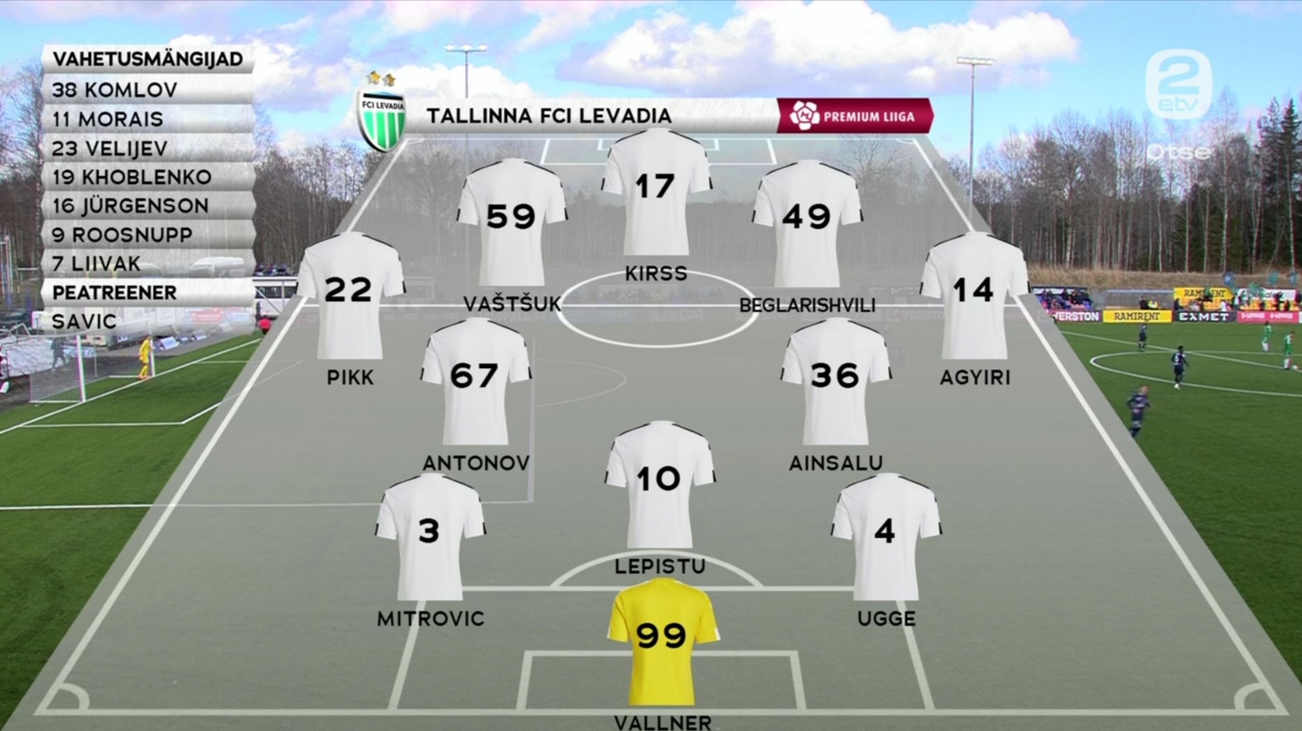Предупреждения: Салистэ, Сингатэх, Лутс, Деабеас (все-Пайде) — Антонов, Рооснупп, Угге, Митрович (все-Левадия).