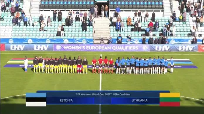 Литва вышла вперёд на 30-ой минуте, когда защитницы эстонской сборной проглядели на правом фланге соперницу, несмотря на численное превосходство. В итоге, Вилте Шварчайте получила возможность для свободного удара, где и отправила мяч с линии штрафной в дальнюю штангу.