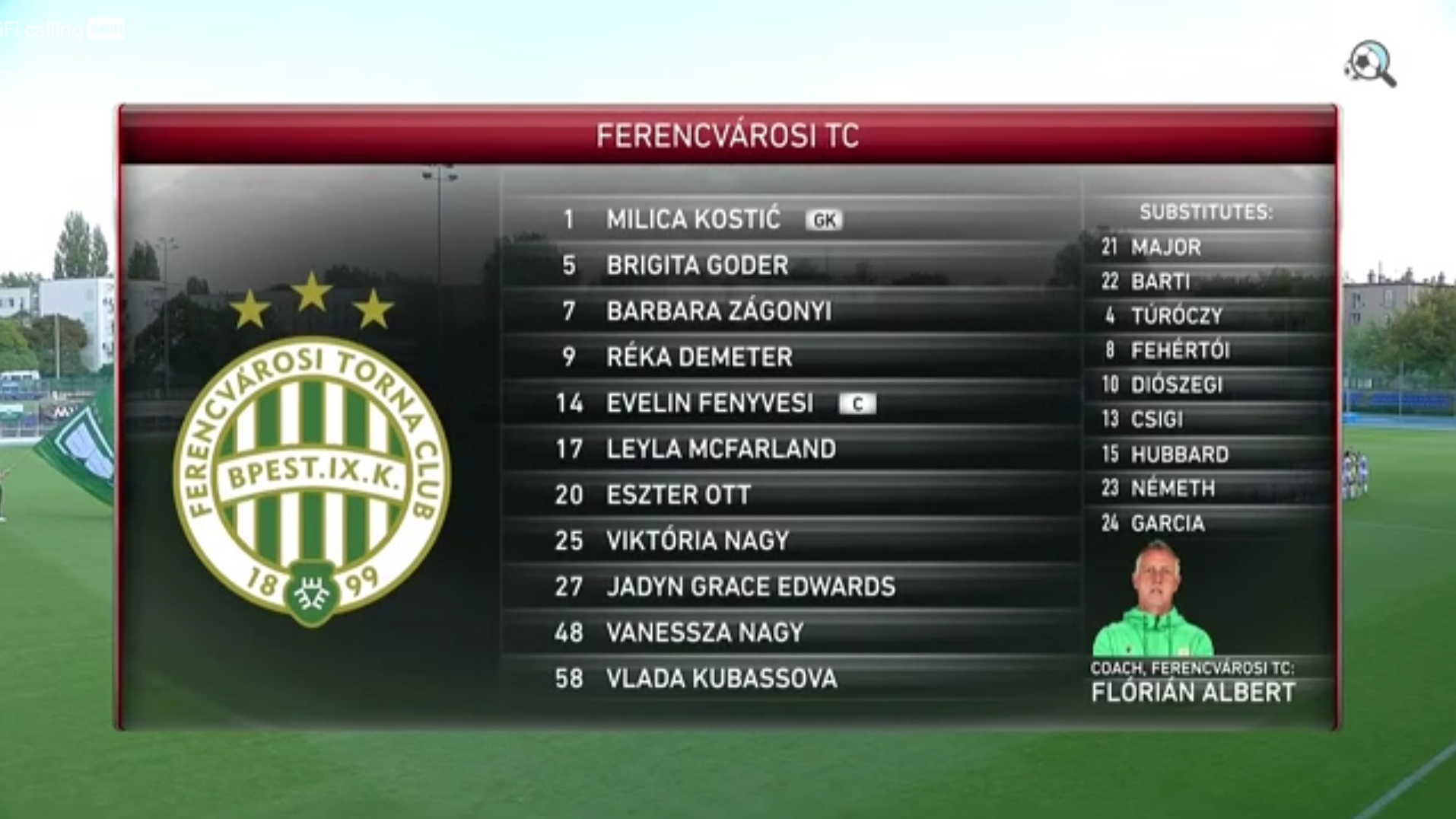 Удаления: 79 минута — Ванесса Наги (Ференцварош), 80 минута — А. Флорин (скамейка запасных Ференцварош)