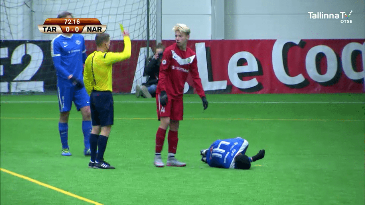 Кульминация матча произошла на 35-ой минуте. Игрок тартуской команды Тауно Текко — заработал две желтые карточки в течении 15 минут, из-за чего был вынужден покинуть сей матч.